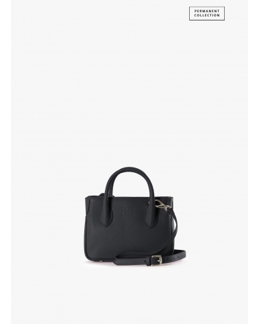 Mini black genuine leather tote bag