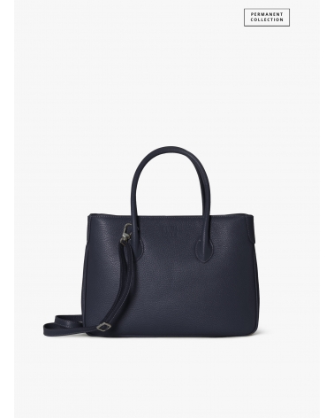 Blue genuine leather tote bag