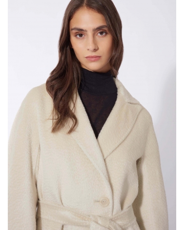 Maxi belted beige alpaca and wool wrap coat