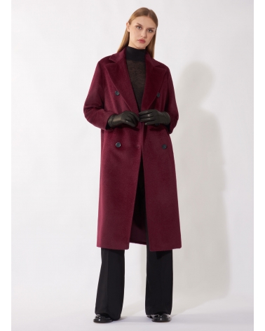 Long double breasted 6 buttons burgundy coat in alpaca and wool
