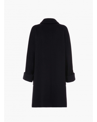 Oversized black pure wool coat with shirt collar