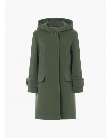 Hooded military green wool and cashmere parka with double pockets