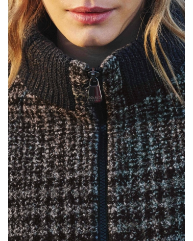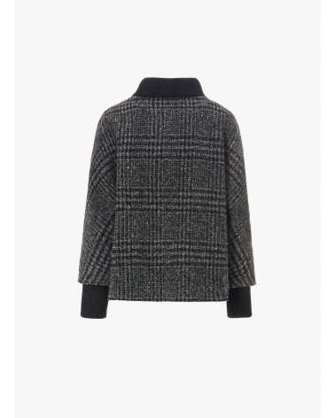 Short grey checked coat with zip closure knitted inserts