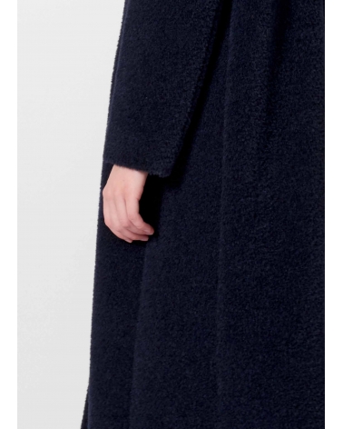 Maxi blue wool and alpaca coat with inverted notch collar