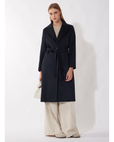 Belted fitted blue pure cashmere coat