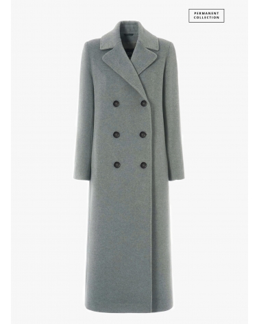 Maxi 6 buttons double breasted light grey wool and cashmere coat