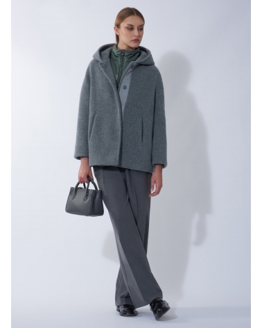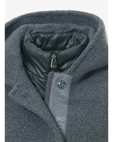 Short grey wool parka with detachable nylon bib