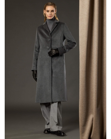 Long single breasted grey pure silk frock coat