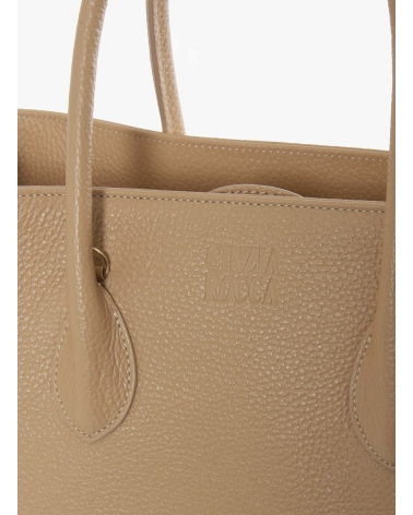 Light camel genuine leather tote bag