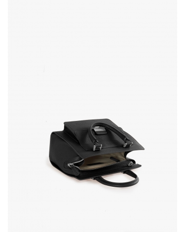 Black genuine leather structured bag with metal closure