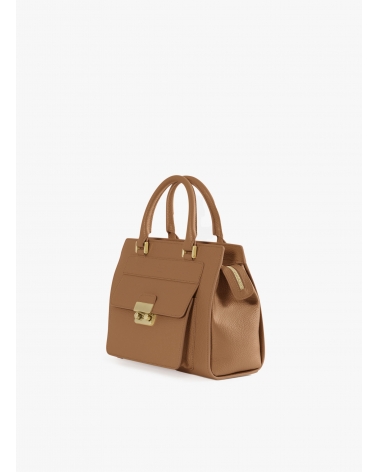 Tobacco color genuine leather structured bag with metal closure