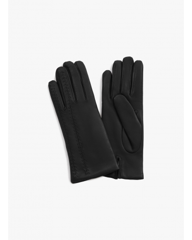 Black nappa leather gloves with top embroidery