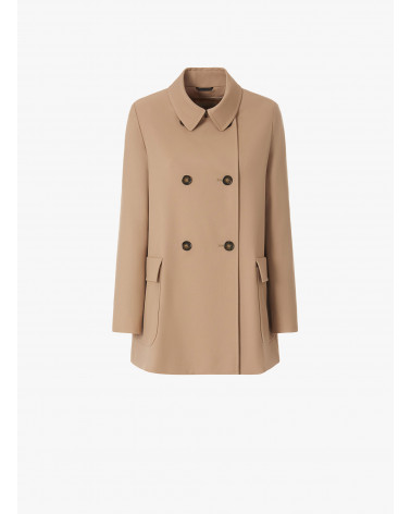 Double breasted beige wool jacket with shirt collar