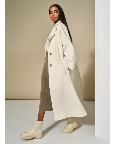 Oversized white pure wool maxi coat