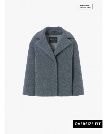 Short grey wool coat with maxi notch collar