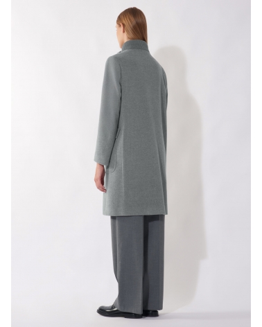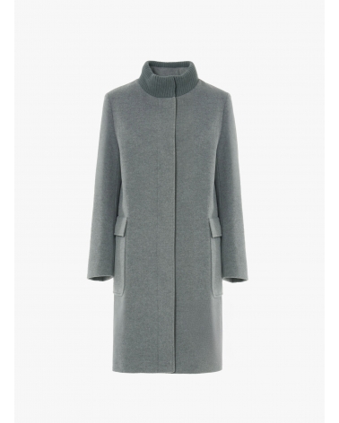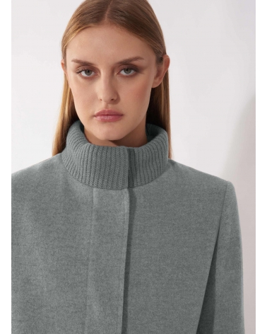 Light grey wool and cashmere coat with knitted collar