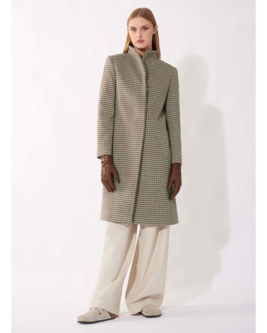 Dark taupe pure wool houndstooth coat with high stand up collar