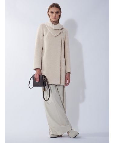 Short flared beige wool and alpaca coat with crossover collar