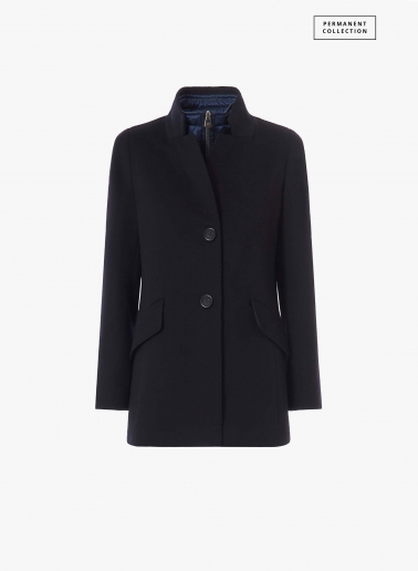 - cappotto corto da donna in lana con collo incrociato per coniugare calore e comfort;
