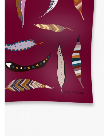 Piccolo foulard in twill di pura seta con fantasia piume stilizzate viola