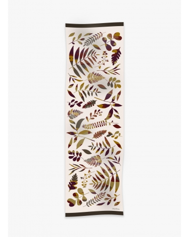 Sciarpa in lana con foglie stilizzate beige