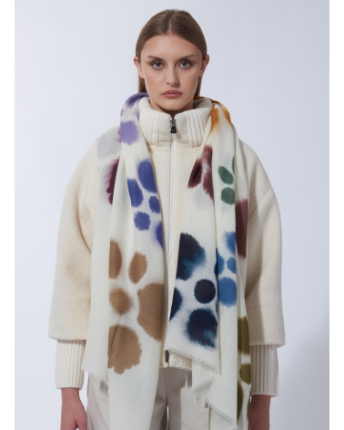 Maxi sciarpa in lana con fantasia fiori acquarello bianca