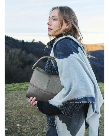 Maxi foulard in puro cashmere con fiore grigio