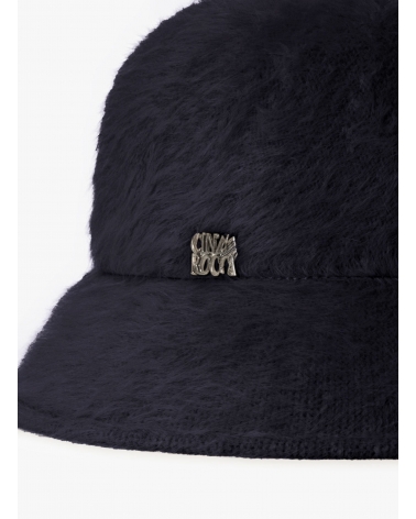 Cappello cloche blu in lana effetto pelliccia
