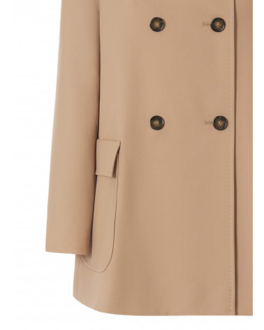 Giacca doppiopetto beige in lana con collo a camicia