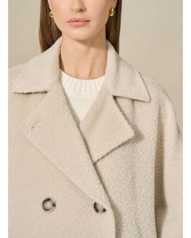 Mantella beige doppio petto in lana e alpaca