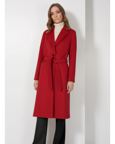 Cappotto rosso con cintura in pura lana linea aderente