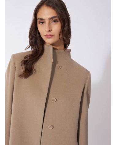 Cappotto beige scuro in lana e cashmere con collo alto