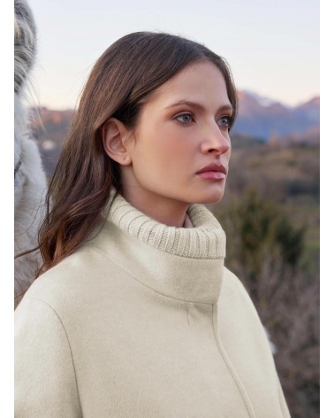 Cappotto beige in pura lana zibeline con inserti in maglia
