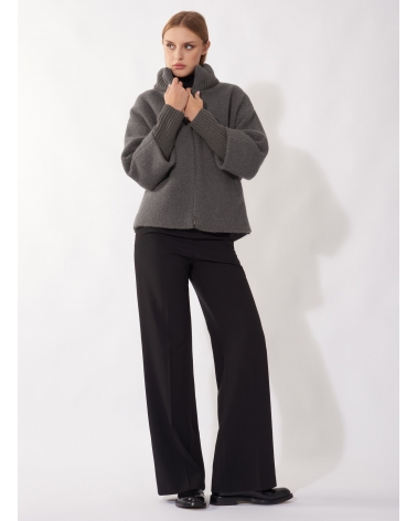 Cappotto corto oversize taupe scuro con inserti in maglia