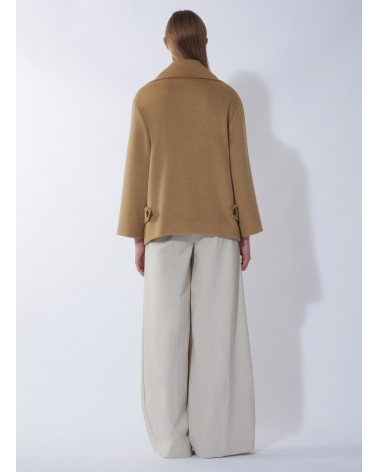 Cappotto corto cammello doppio petto con maxi rever in pura lana di cammello