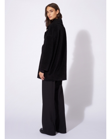 Cappotto corto oversize nero doppio petto in lana e alpaca