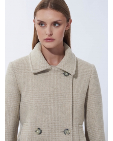 Peacoat beige doppio petto con fantasia micro pied de poule