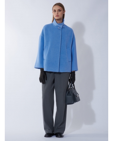 Cappotto corto azzurro con texture tessuto in contrasto in lana e alpaca