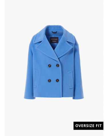 Cappotto corto oversize azzurro doppio petto in pura lana con maxi rever