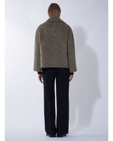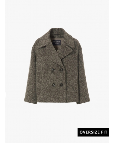 Cappotto corto doppio petto oversize taupe scuro con fantasia animalier
