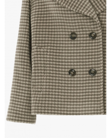 Cappotto corto doppio petto oversize taupe scuro in pura lana con fantasia pied de poule