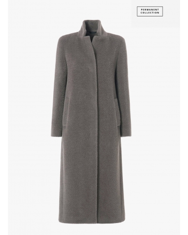 Maxi cappotto taupe scuro in lana e alpaca con collo a rever rovesciato