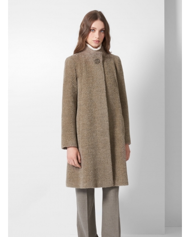 Cappotto taupe svasato in lana e alpaca