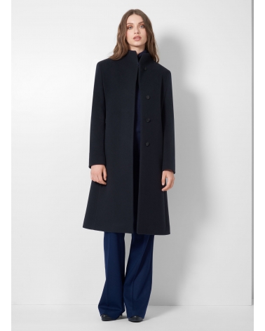 Cappotto blu in lana e cashmere con collo alto