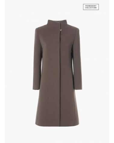 Cappotto taupe scuro in lana e cashmere con collo alto