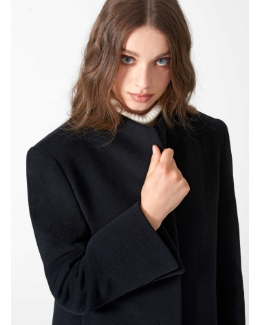 Cappotto corto nero in lana e cashmere con collo alto