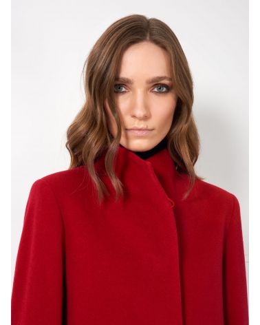 Cappotto corto rosso in lana e cashmere con collo alto