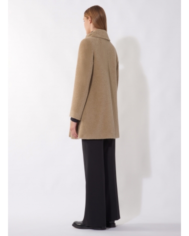 Cappotto corto beige scuro svasato in lana e alpaca con collo incrociato