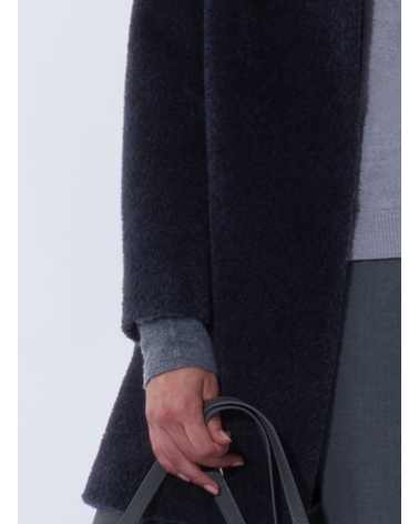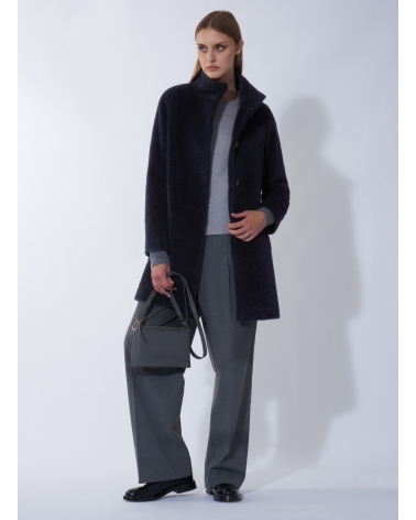 Cappotto corto blu svasato in lana e alpaca con spacchi laterali
