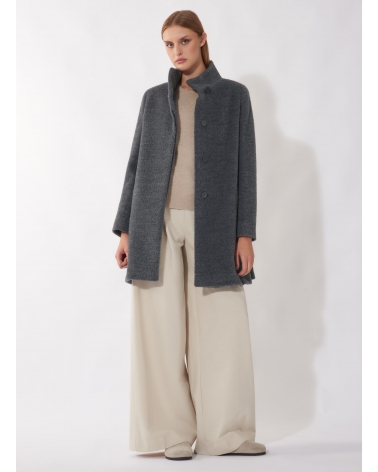 Cappotto corto grigio svasato in lana e alpaca con spacchi laterali